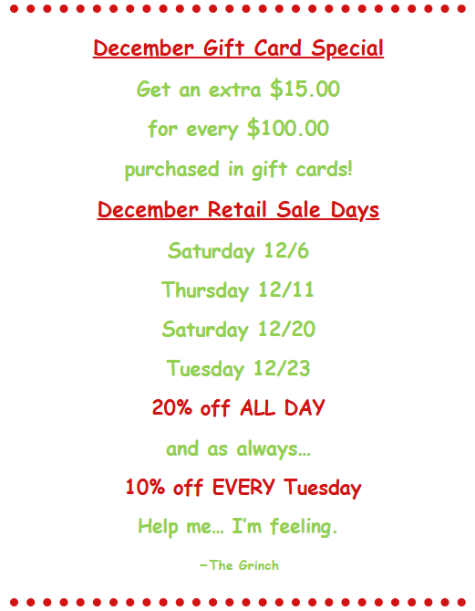We Have Gift Certificates Available in Any Amount for Every Occasion